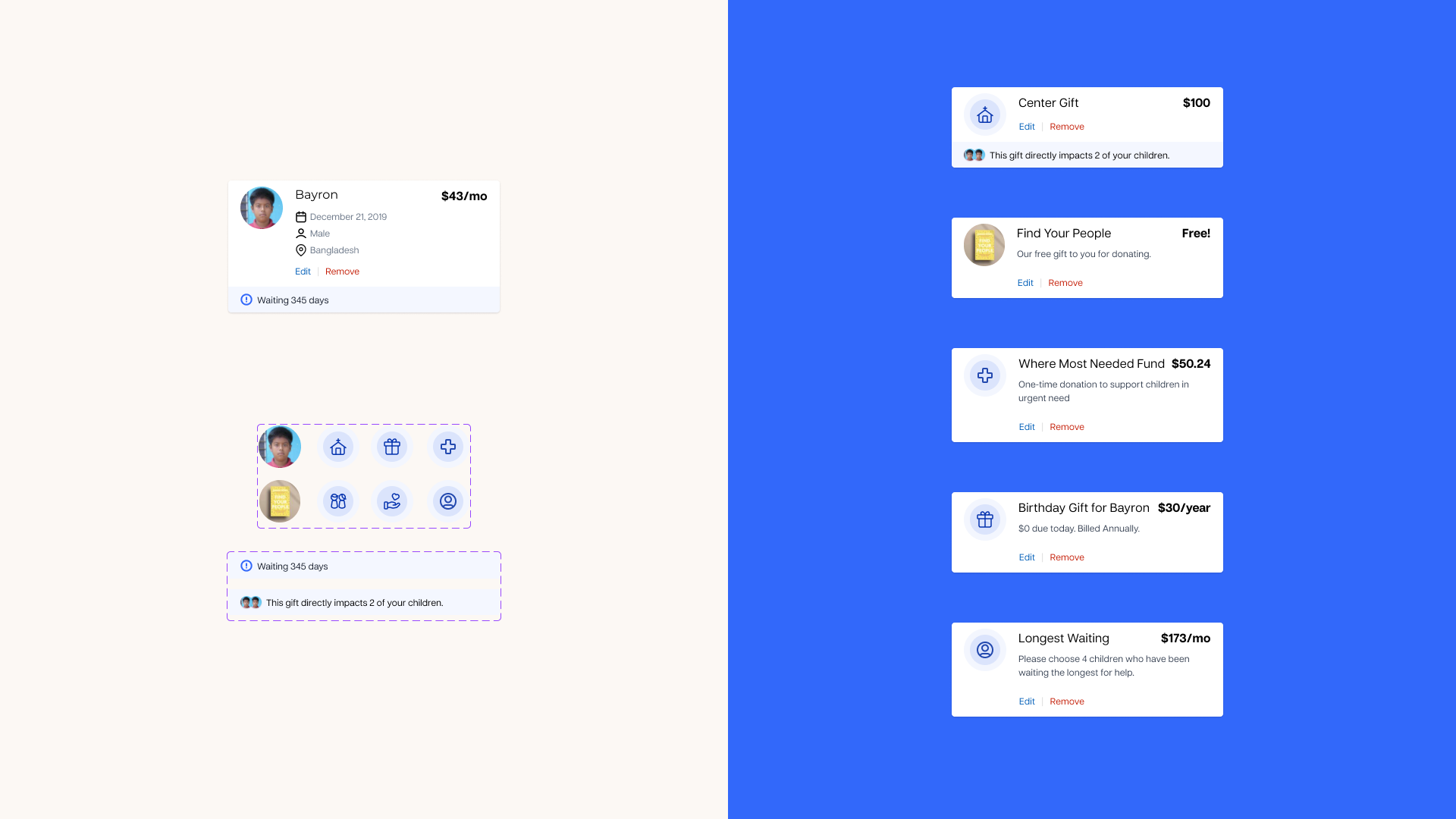 Streamlining Donation Types: While our mission revolves around supporting children in need through monthly donations, the diversity of donation types offered by Compassion has led to complexity in our checkout process. To address this, we aimed to standardize the presentation of donation options, reducing cognitive load and providing clarity to users.